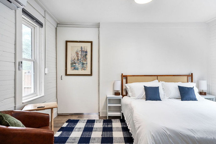 COMFORT & STYLE TO DELIGHT - Relax with a 55" TV & a spacious king bed. Couch folds out to a queen floor bed. Small privacy fenced backyard. Dog-friendly.